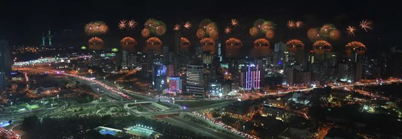 کویت کے دارالحکومت کویت سٹی میں ملک کے قومی اورآزادی کے دن کی تقریبات کے حصے کے طور پر آتش بازی کا مظاہرہ کیا جا رہا ہے۔(شِنہوا)