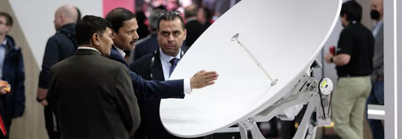 سپین کےشہر بارسلونا میں 2023 موبائل ورلڈ کانگریس (ایم ڈبلیوسی) میں نمائش کا دورہ کرنے والے لوگ سیٹلائٹ ٹیلی کمیونیکیشن ڈیوائس کے بارے میں معلومات لے رہےہیں، 27 فروری سے 2 مارچ تک جاری نمائش میں فولڈ ایبل فونز سے لے کر رول ایبل اسکرینز تک موبائل کمیونیکیشن انڈسٹری میں جدید ترین تکنیکی ایجادات پیش کی گئی ہیں۔(شِنہوا)
