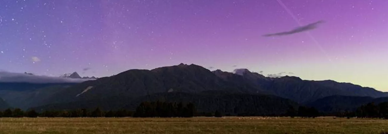 نیوزی لینڈ کے جنوبی جزیرے کے مغربی ساحل پر واقع فاکس گلیشیئر سے قطبی روشنی کی خوبصورت رقص کرتی کرنیں دیکھی جاسکتی ہیں۔ انہیں جنوبی روشنیاں بھی کہا جاتا ہے۔فاکس گلیشیئر میں وسیع نظارے کے ساتھ جنوبی روشنیاں رات میں آسمان کو سبز ، نیلے، جامنی اور سرخ چمکتے رنگوں سے منور کرتی ہیں۔ اس سے گلیشیئر پر حیرت انگیز نظارے دیکھنے کو ملتے ہیں اور روشنیاں ایک دوسرے کی تکمیل کرتی ہیں۔