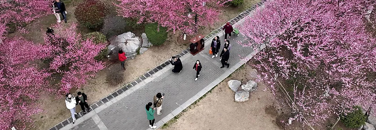 چین، وسطی صوبہ ہوبے کے شہر شیانگ یانگ میں لوگ پھولوں سے لطف اندوز ہورہے ہیں۔ (شِںہوا)