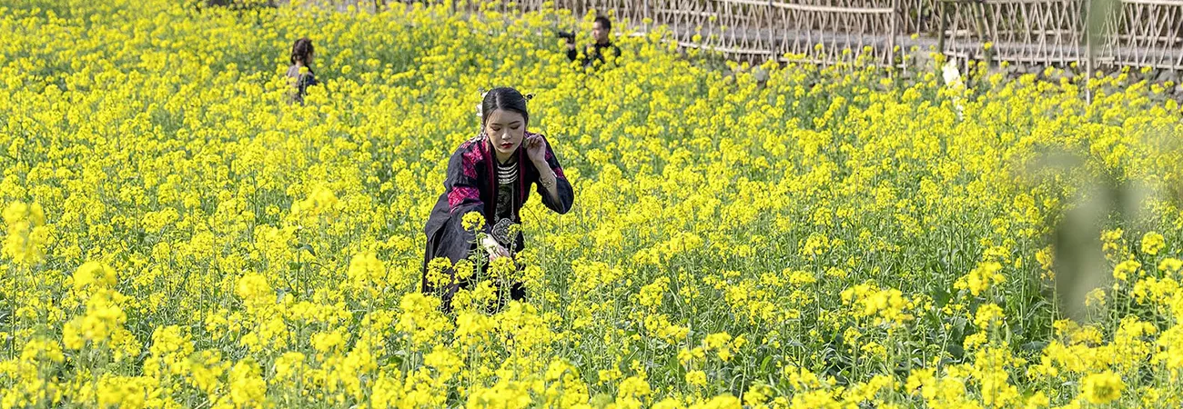 چین، جنوب مغربی صوبہ گوئی ژو کی کاؤنٹی لی پھنگ میں لوگ سرسوں کے کھیت کا دورہ کررہے ہیں۔(شِںہوا)