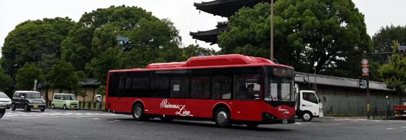 فائل فوٹو، جاپان کے کیوٹو میں ایک بی وائی ڈی الیکٹرک بس کو دیکھا جا سکتا ہے۔(شِنہوا)
