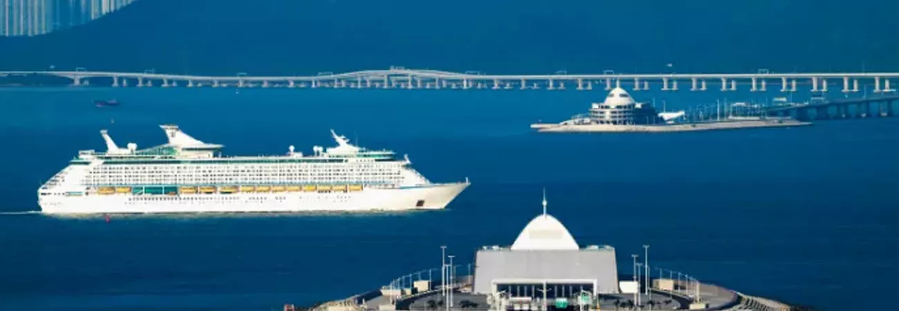 چین، جنوب میں واقع ہا نگ کا نگ ۔ژو ہائی۔مکاؤ پُل کے مصنوعی جزیروں کے قریب سے کروز جہاز گزر ر ہا ہے۔(شِنہوا)