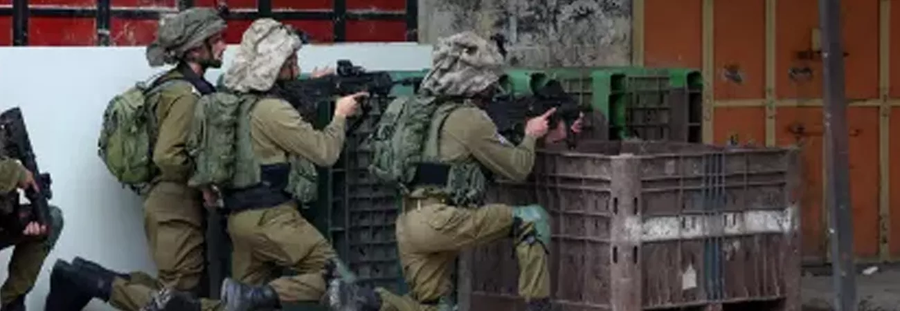 مغربی کنارے کے شہر الخلیل میں فلسطینیوں کے ساتھ جھڑپوں کے دوران اسرائیلی فوجی پوزیشن لئے ہوئے دیکھے جا سکتے ہیں۔(شِنہوا)