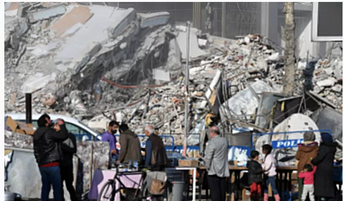 تر کیہ، زلزلہ سے متاثرہ اد یامن شہر میں تبا ہ ہو نے والی عمات کے ملبے کے قر یب لو گوں کو دیکھا جا سکتا ہے۔(شِنہوا)