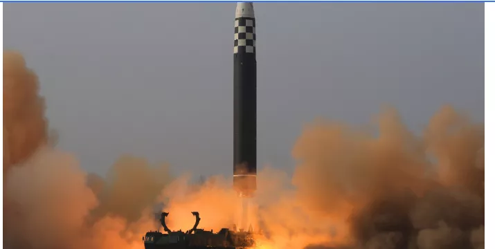 فائل فوٹو،  کورین سینٹر ل نیوز ایجنسی کی فراہم کردہ تصویر میں نئے قسم کے بین البراعظمی بیلسٹک میزائل ہوا سونگ فو۔17 کی آ ز ما ئشی لا نچ دیکھی جا سکتی ہے۔(شِنہوا)