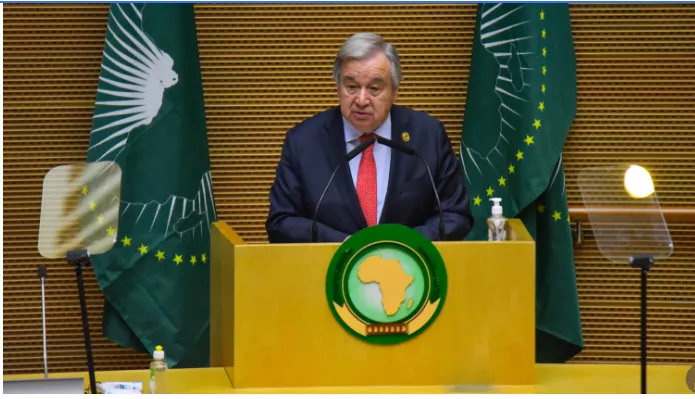 ادیس ابا با،  اقوام متحدہ کے سیکرٹری جنرل انتونیو گوتریس ایک تقر یب سے خطاب کر رہے ہیں۔(شِنہوا)