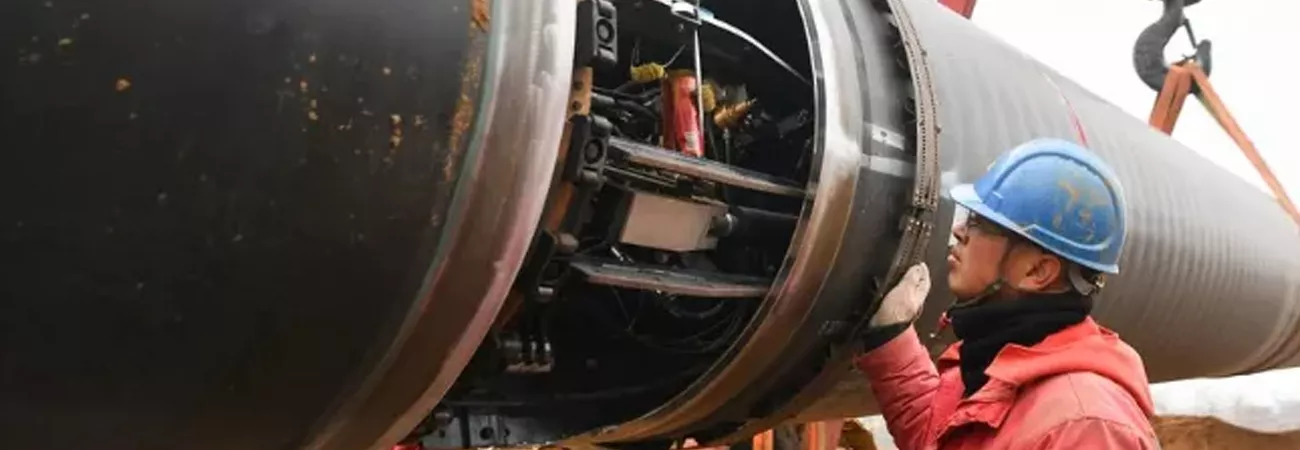 چین، شمال مغربی صوبہ شانشی کے شہر شیان یانگ کی کاؤنٹی لیچھوان میں تھرڈ ویسٹ۔ ٹو۔ ایسٹ قدرتی گیس پائپ لائن کے شانشی سیکشن کی تعمیراتی جگہ پر عملہ کام کررہا ہے۔(شِنہوا)