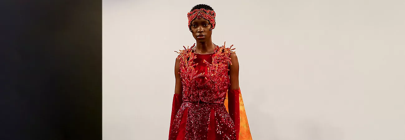 برطانیہ،  لندن فیشن ویک کے دوران ماڈل ایک لباس کی نمائش کررہی ہے۔ (شِںہوا)