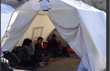 شام کے زلزلہ زدہ شہر حلب میں بے گھر افراد  ایک عارضی خیمے میں رہائش پذیر ہیں۔(شِنہوا)