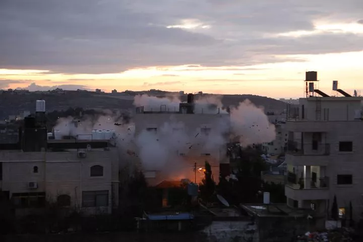 مغربی کنارے کے شہر ہیبرون میں اسرائیلی فوجیوں کی جانب سے دھماکے سے اڑائے جانے والے مکان سے دھواں اٹھ رہا ہے۔(شِنہوا)