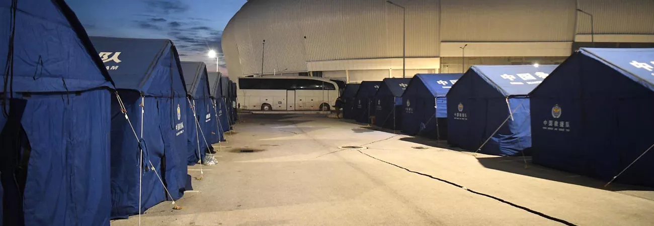 ترکی کے زلزلہ سے متاثرہ جنوبی صوبےہاتے کے شہرانطاکیہ  میں چین کی سرچ اینڈ ریسکیو ٹیم کے عارضی کیمپ  کا ایک منظر۔(شِنہوا)