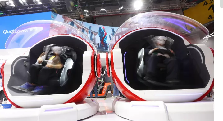 چین ، مشرقی شہر شنگھائی کے قومی نمائش اور کنونشن مرکز میں منعقدہ 5 ویں چائنہ بین الاقوامی درآمدی نمائش میں لوگ مصنوعی ذہانت خصوصی نمائشی علاقے میں وی آر گیم سیٹ کی آزمائش کررہے ہیں۔ (شِنہوا)
