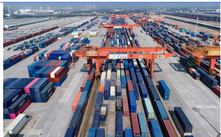 چین کے شمال مغربی صوبہ شانشی میں شی آن بین الاقوامی بندرگاہ دیکھی جا سکتی ہے۔(شِنہوا)