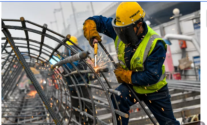 فائل فوٹو، چین ، شمالی تیان جن میں تیان جن ریل ٹرانزٹ لائن 8 کے ایک زیرتعمیر سیکشن پر ایک مزدور کام کررہا ہے۔ (شِنہوا)