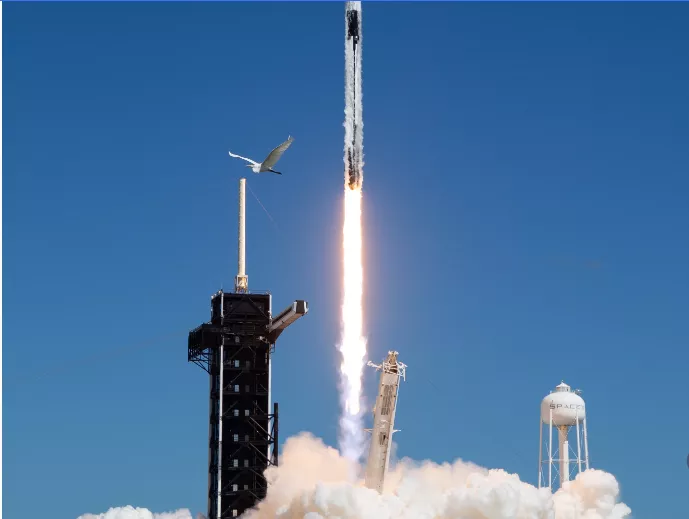 اسپیس ایکس فالکن9 راکٹ کینیڈی سپیس سنٹرسے ناسا کے اسپیس ایکس عملہ بردار-5 مشن کو خلائی اسٹیشن کے لیے لے کر روانہ ہورہا ہے۔(شِنہوا)