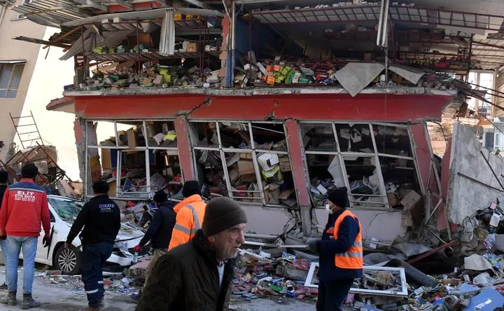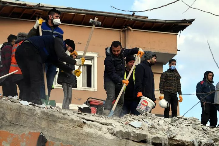 ترکی کے صوبے ہاتے کے زلزلہ متاثرہ شہر انطاکیہ میں امدادی کارکن تباہ ہونے والی عمارتوں کے ملبے سے زندہ بچ جانے والوں کو تلاش کرتے ہوئے۔ (شِنہوا)