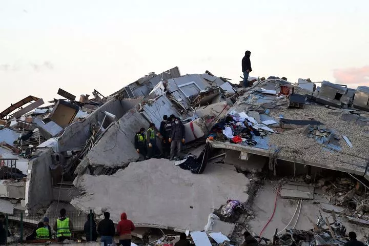 امدادی کارکن ترکی کے جنوبی صوبے ہاتے میں زلزلہ سے تباہ ہونے والی عمارت کے ملبے تلے دبے افراد کو نکالنے میں مصروف ہیں۔(شِنہوا)