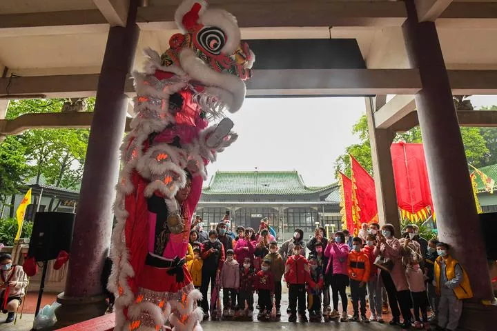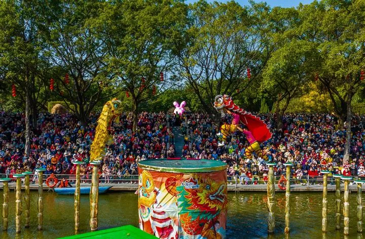 چین ، جنوبی صوبہ گوانگ ڈونگ کے شہر فوشان میں سیاح گوانگ ڈونگ شیر رقص شو سے لطف اندوز ہورہے ہیں۔ (شِنہوا)