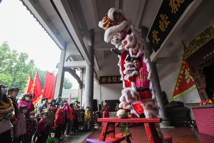 چین ، جنوبی صوبہ گوانگ ڈونگ کے شہر فوشان میں لوگ گوانگ ڈونگ شیر رقص شو سے لطف اندوز ہورہے ہیں۔ (شِنہوا)