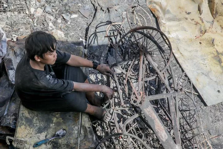 فلپائن کے شہر کوئزون میں کچی آبادی میں آگ لگنے کے بعد ایک رہائشی جلے ہوئے مکان کے ملبے سے استعمال کے قابل چیزیں تلاش کرتے ہوئے۔(شِنہوا)