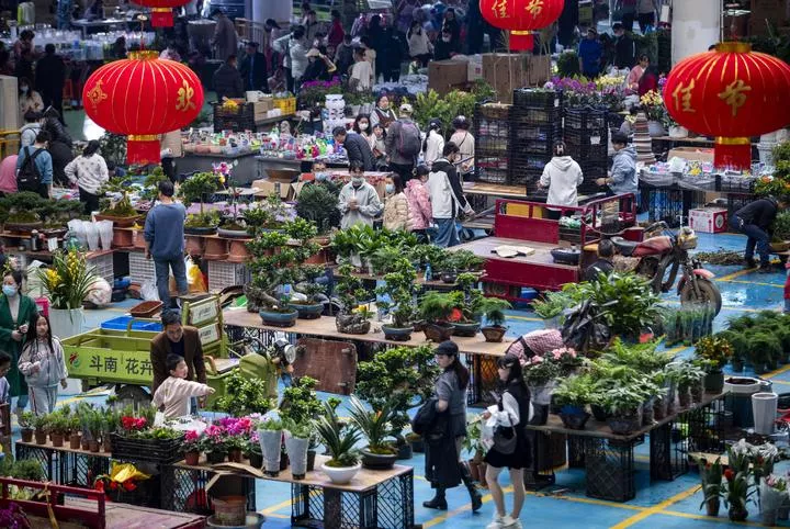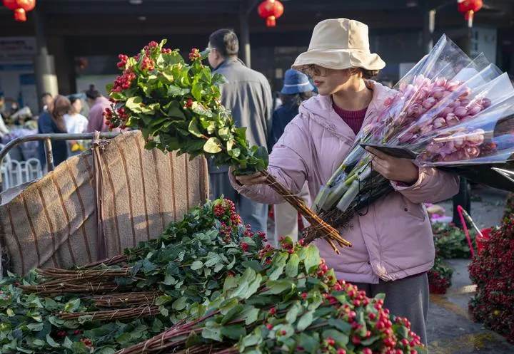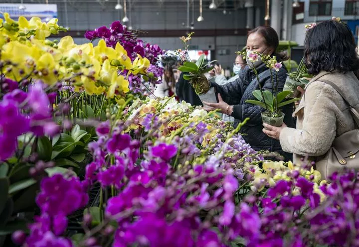 چین ، جنوب مغربی صوبہ یون نان کی کن منگ ڈونان پھول منڈی میں لوگوں کو دیکھا جا سکتا ہے۔ (شِنہوا)