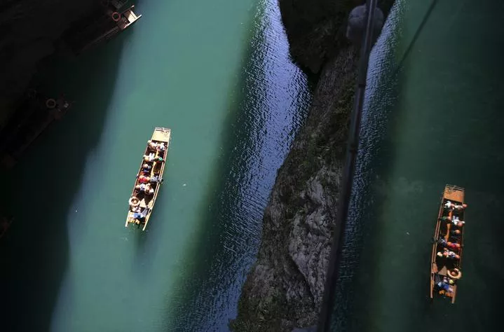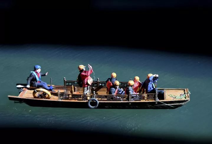 چین ، وسطی صوبہ ہوبے کی کاؤنٹی ہی فینگ میں سیاح پھنگ شان وادی میں کشتی رانی سے لطف اندوز ہورہے ہیں۔ (شِنہوا)