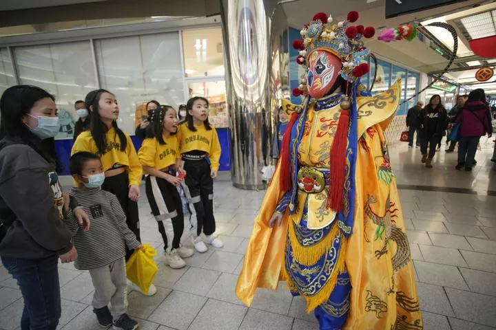 کینیڈا ، برٹش کولمبیا کے شہر رچ مونڈ کے لینس ڈاؤن مرکز میں چینی نئے سال کے جشن کے حوالے سے ایک فنکار روایتی "بیان لیان" یا چہرے میں تبدیلی کے فن کا مظاہرہ کررہا ہے۔(شِنہوا)