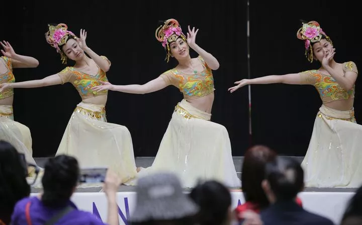 کینیڈا ، برٹش کولمبیا کے شہر  رچ مونڈ کے لینس ڈاؤن مرکز میں چینی نئے سال کے جشن کے حوالے سے رقاصائیں فن کا مظاہرہ کرر ہی ہیں۔ (شِنہوا)