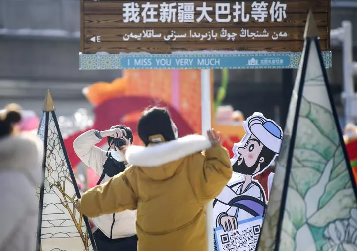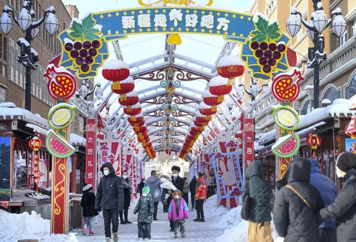 چین کے شمال مغربی سنکیانگ ویغورخود مختار علاقےکے شہر ارمچی میں لوگ بہار کے تہوار کی چھٹیوں کے دوران بڑے بازار کا دورہ کر رہے ہیں۔ (شِنہوا)