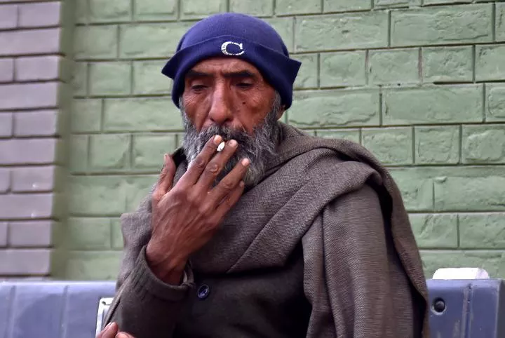 پشاور ، ایک شخص سگریٹ نوشی کررہا ہے۔(شِنہوا)