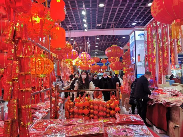 چین کے وسطی صوبےہوبے کےدارالحکومت ووہان میں لوگ نئے چینی قمری سال کے موقع پر خریداری کرتے ہوئے۔(شِنہوا)