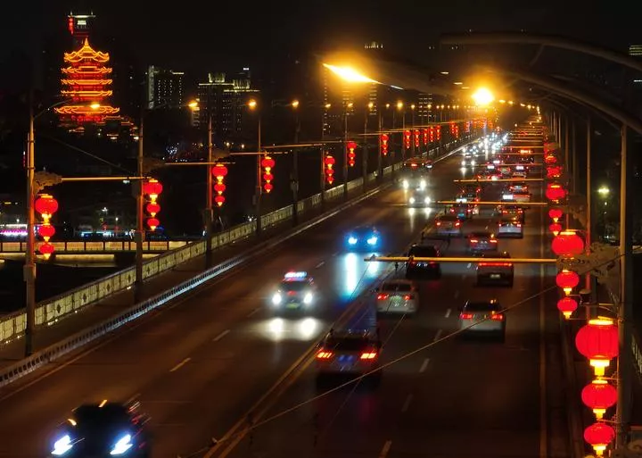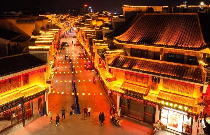 چین ، وسطی صوبہ ہونان کے شہر ہینگ یانگ کے قصبے نان یو ئے میں رات کا منظر۔ (شِنہوا)