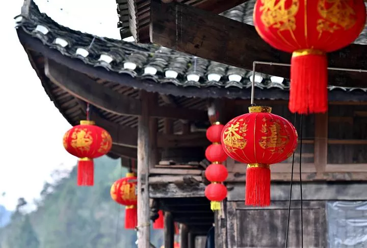 چین ، وسطی صوبہ ہوبے کی کاؤنٹی شوآن ان کے قصبے شاڈاؤگو میں لکڑی کی عمارت پر لٹکی لالٹین کو دیکھا جاسکتا ہے۔(شِنہوا)