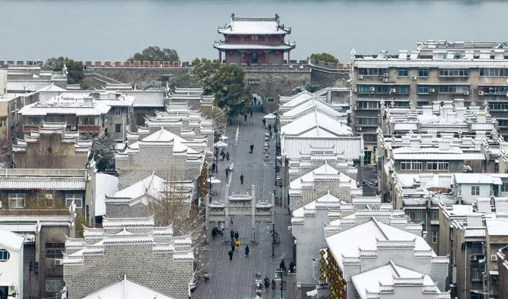 چین، وسطی صوبہ ہوبے کے شہر شیانگ یانگ کے ایک قدیم قصبے میں برفباری کا دلکش منظر۔ (شِںہوا)