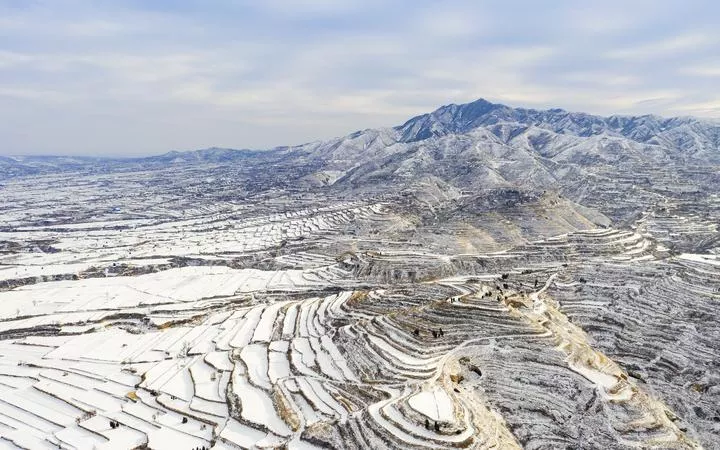 چین، شمالی صوبہ شنشی کے شہر لین فین کی کاؤنٹی شیانگ فین میں برف سے ڈھکے میدان کو دیکھا جاسکتا ہے۔(شِںہوا)