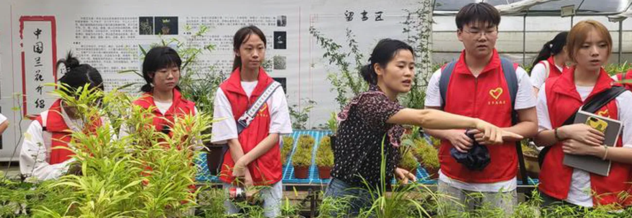 چین ، جنوب مغربی بلدیہ چھونگ چھنگ کے ضلع چھی جیانگ کے قصبے سان جیاؤ کے دیہات پھنگ شیانگ میں واقع ایک شجرکاری مرکز میں آؤ چھن گوئی کالج طلبا کو باغ بارے بتارہی ہے۔ (شِںہوا)