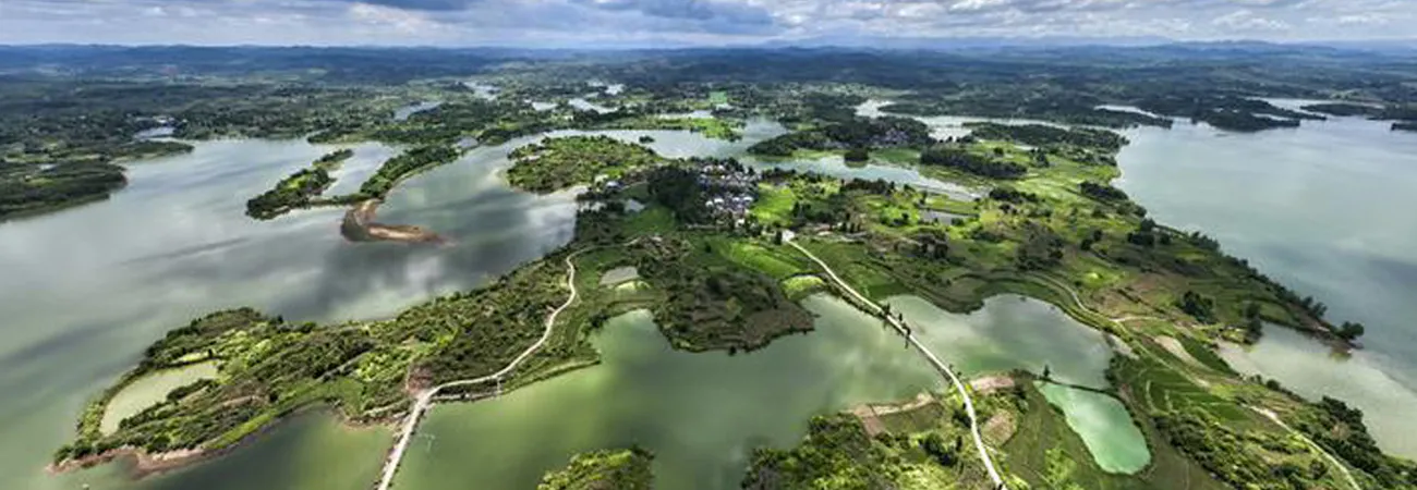 چین ، وسطی صوبہ ہونان کے شہر چھن ژو کی کاؤنٹی گوئی یانگ میں چھونگ لینگ نیشنل ویٹ لینڈ پارک کا ایک خوبصورت  نظارہ۔ (شِنہوا)