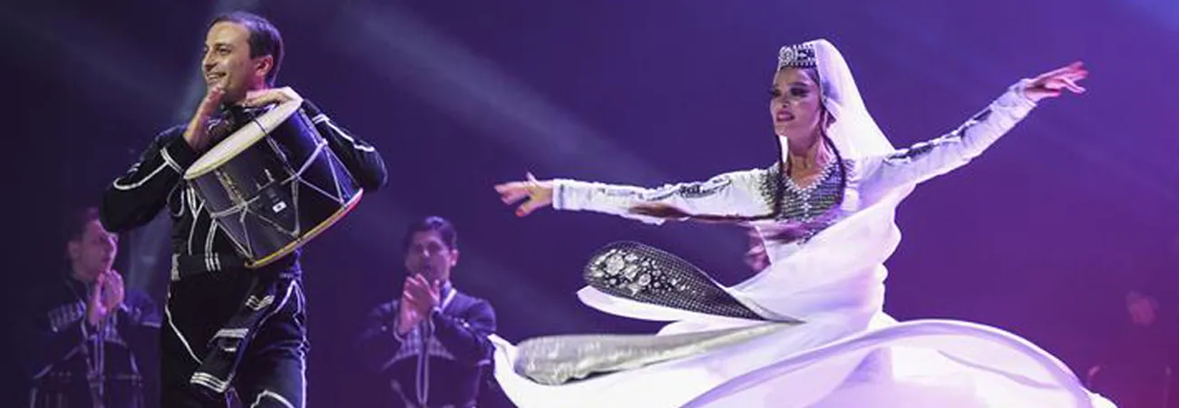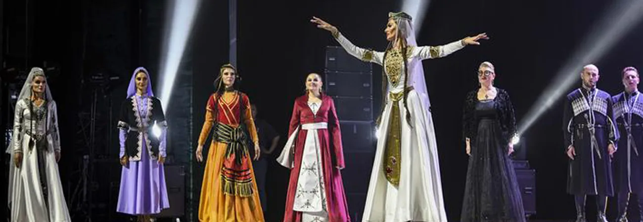چین، شمال مغربی سنکیانگ ویغور خود اختیار خطے کے دارالحکومت ارمچی میں منعقدہ چھٹے چائنہ سنکیانگ بین الاقوامی رقص میلے میں جارجیئن اسٹیٹ نیشنل سنگنگ اینڈ ڈانسنگ اکیڈمک اینسیبل ایریژونی کے فنکار فن کا مظاہرہ کررہے ہیں۔ (شِنہوا)