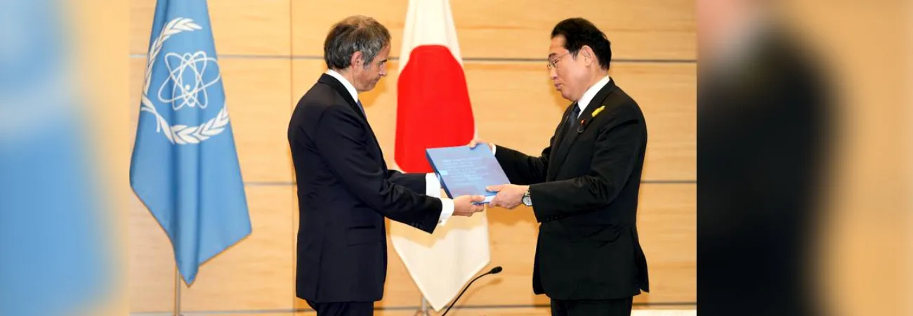 آئی اے ای اے کے ڈائریکٹر جنرل رافیل گروسی کی طرف سے گزشتہ روز ٹوکیو میں جاپانی وزیر اعظم فومیو کیشیدا کو رپورٹ پیش کی گئی، رپورٹ کے پیش لفظ میں آئی اے ای اے کے سربراہ نے کہا کہ وہ اس بات پر زور دیتے ہیں کہ فوکوشیما ڈائیچی پاور سٹیشن میں ذخیرہ شدہ ٹریٹڈ پانی کو سمندر میں بہانا جاپان حکومت کا قومی فیصلہ ہے اور یہ رپورٹ نہ تو اس پالیسی کی سفارش کرتی ہے اور نہ ہی اس کی توثیق کرتی ہے۔