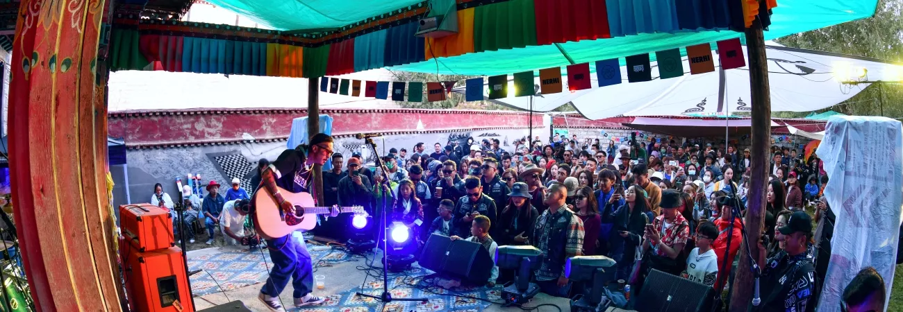 چین ، جنوب مغربی تبت خوداختیار خطے کے صدرمقام لہاسا میں نوجوان لائیو کنسرٹ میں شریک ہیں۔ (شِنہوا)