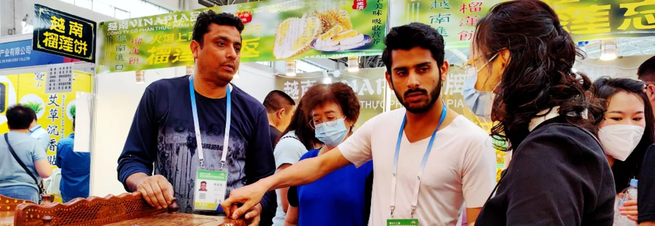 چین، ہاربن عالمی اقتصادی اور تجارتی میلے میں پاکستانی نمائش کنندگان گاہکوں سے بات چیت کررہے ہیں۔ (شِنہوا)