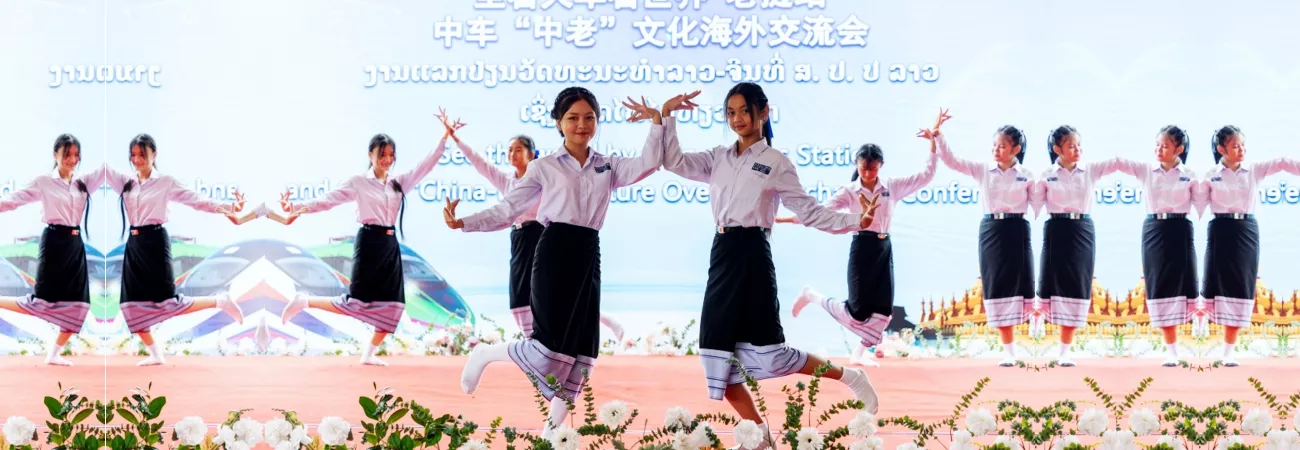 لاؤس، دارالحکومت وینتیان کے کومفیٹ لوئر سیکنڈری اسکول میں سی آر آر سی کے فراہم کردہ فٹ بال میدان کی حوالگی تقریب میں طالبات رقص کا مظا ہرہ کررہی ہیں۔(شِنہوا)