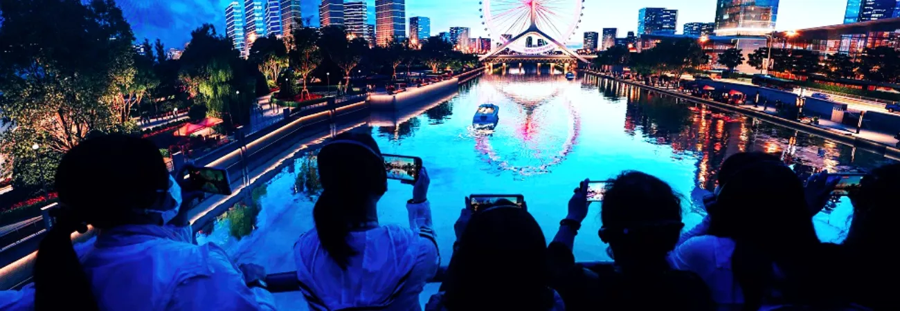 چین، مشرقی صوبہ جیانگ سو کے شہر یانگ ژو میں چائنہ عظیم نہرعجائب گھر میں سیاح 5 جی تجرباتی زون کا دورہ کررہے ہیں۔ (شِنہوا)