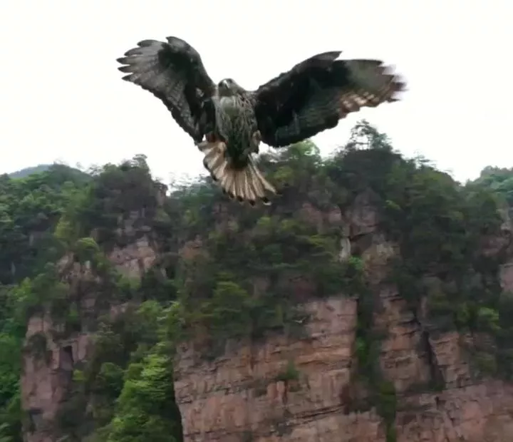 چین ، وسطی صوبہ ہونان کے شہر ژینگ جیا جی کے جیوتیان فینگ لیان  تفریحی علاقے میں ایک باز کو ڈرون پر حملہ کرتے دیکھا جاسکتا ہے۔ (شِنہوا)
