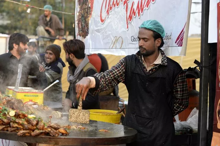 اسلام آباد، 3 روزہ خوراک میلے کے دوران ایک باورچی کھانا تیار کررہا ہے۔ (شِنہوا)