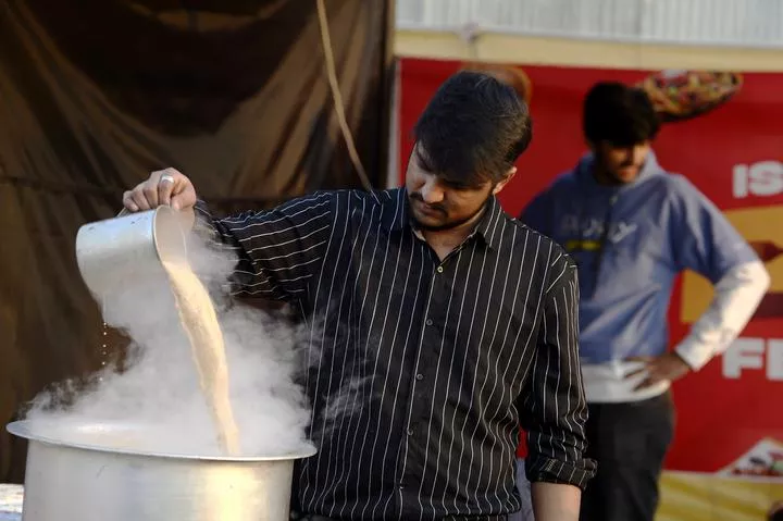 اسلام آباد، 3 روزہ خوراک میلے کے دوران ایک شخص چائے تیار کررہا ہے۔ (شِنہوا)