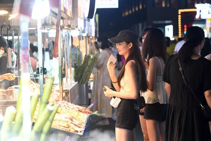 چین، جنوبی گوانگ شی ژوآنگ خوداختیار خطے کے شہر نان ننگ میں لوگ نائٹ مارکیٹ کا دورہ کررہے ہیں۔ (شِنہوا)