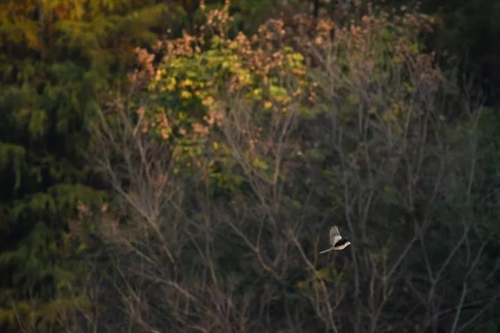چین، مشرقی صوبہ انہوئی کے شہر ہیفے میں چھاؤہو جھیل کے اطراف ایک ویٹ لینڈ کے قریب ایک پرندہ پرواز کررہا ہے۔ (شِنہوا)