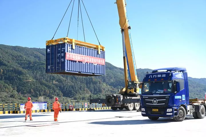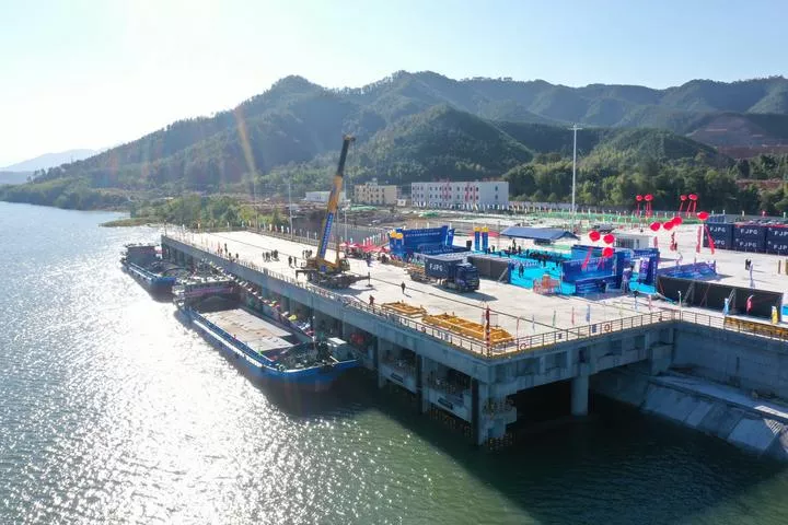 چین ، جنوب مشرقی صوبہ فوجیان کی بندرگاہ نان پھنگ کی ایک گودی پر نئی توانائی جہاز پر کنٹینرز لادے جارہے ہیں۔ (شِنہوا)